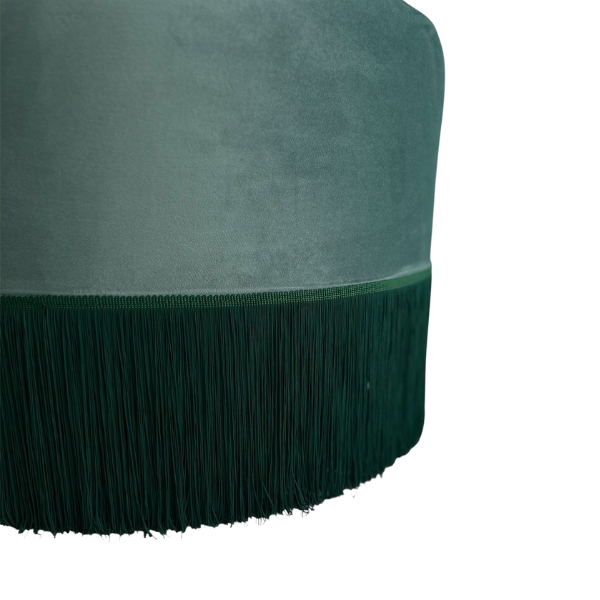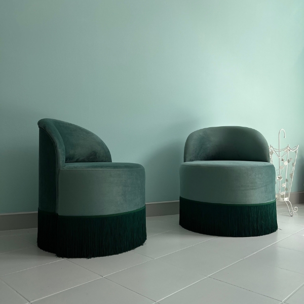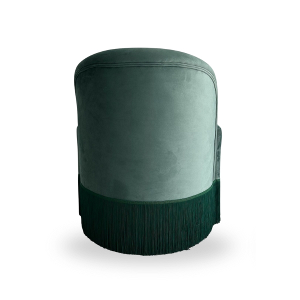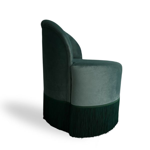Acest fotoliu sofisticat îmbină eleganța clasică cu un design contemporan, devenind o piesă statement în orice interior. Silueta sa rotunjită oferă un confort deosebit, iar detaliul decorativ al franjurilor adaugă o notă de rafinament și unicitate.