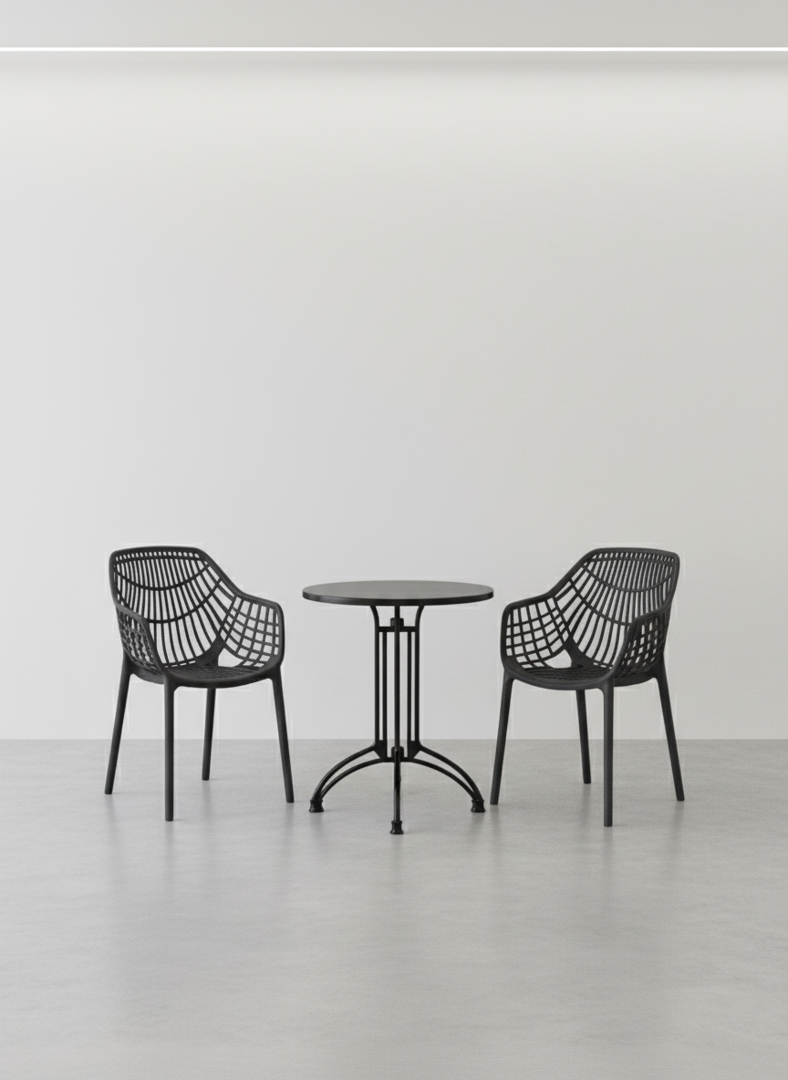 Se potrivește perfect în diverse amenajări: moderne, industriale sau minimaliste. Poate fi utilizat atât la mese de dining outdoor, cât și ca piesă individuală de accent.