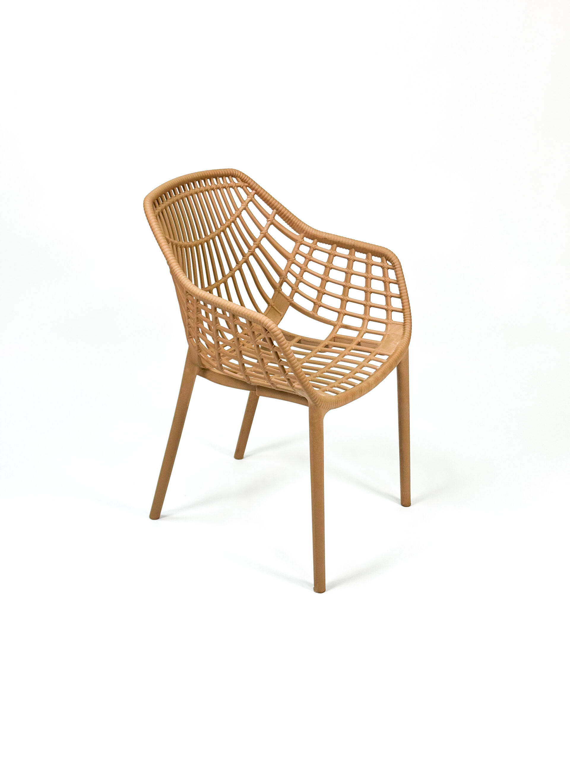 Acest scaun de exterior impresionează printr-un design contemporan, minimalist, fiind alegerea ideală pentru terase, grădini, balcoane sau spații HoReCa. Realizat din materiale rezistente, scaunul îmbină estetica modernă cu funcționalitatea practică.