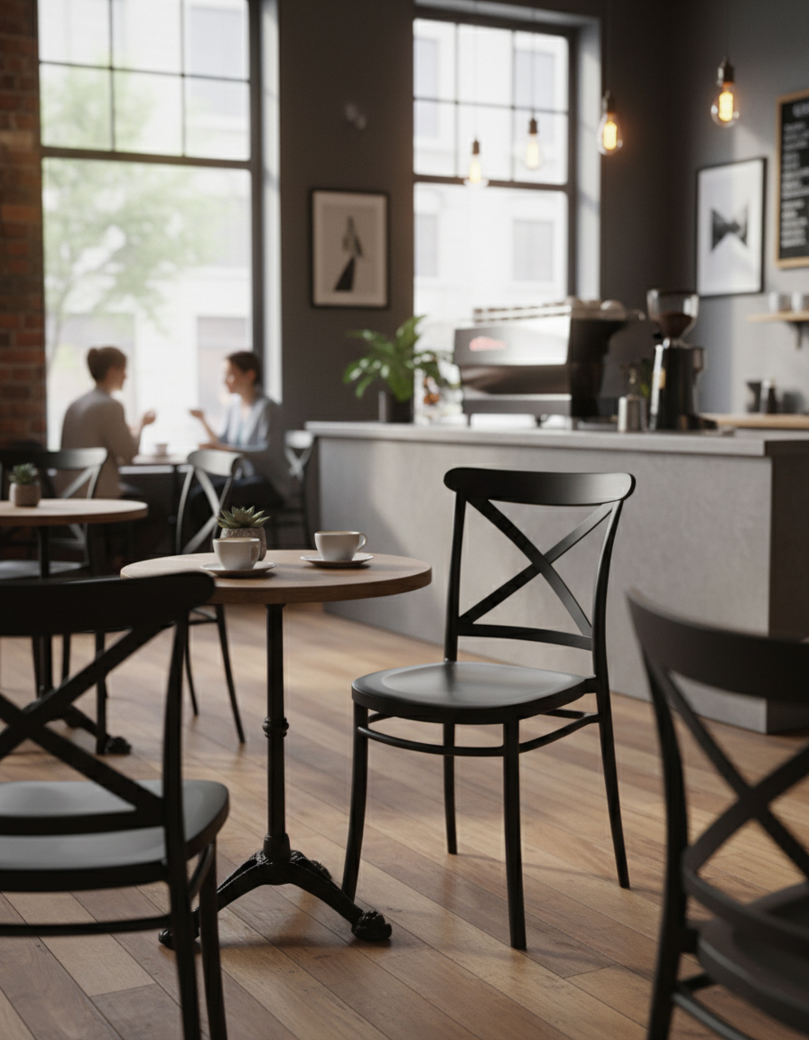 Se potrivește perfect în diverse amenajări: moderne, industriale sau minimaliste. Poate fi utilizat atât la mese de dining outdoor, cât și ca piesă individuală de accent.