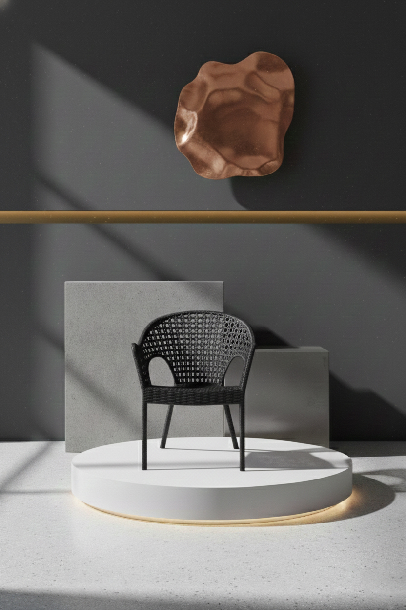 Scaun de exterior cu design sculptural și estetică contemporană – pentru experiențe relaxate în stil contemporan.Construit din material rezistent la condiții exterioare, scaunul îmbină durabilitatea cu rafinamentul vizual, fiind ideal pentru terase moderne, grădini amenajate sau spații HoReCa premium.