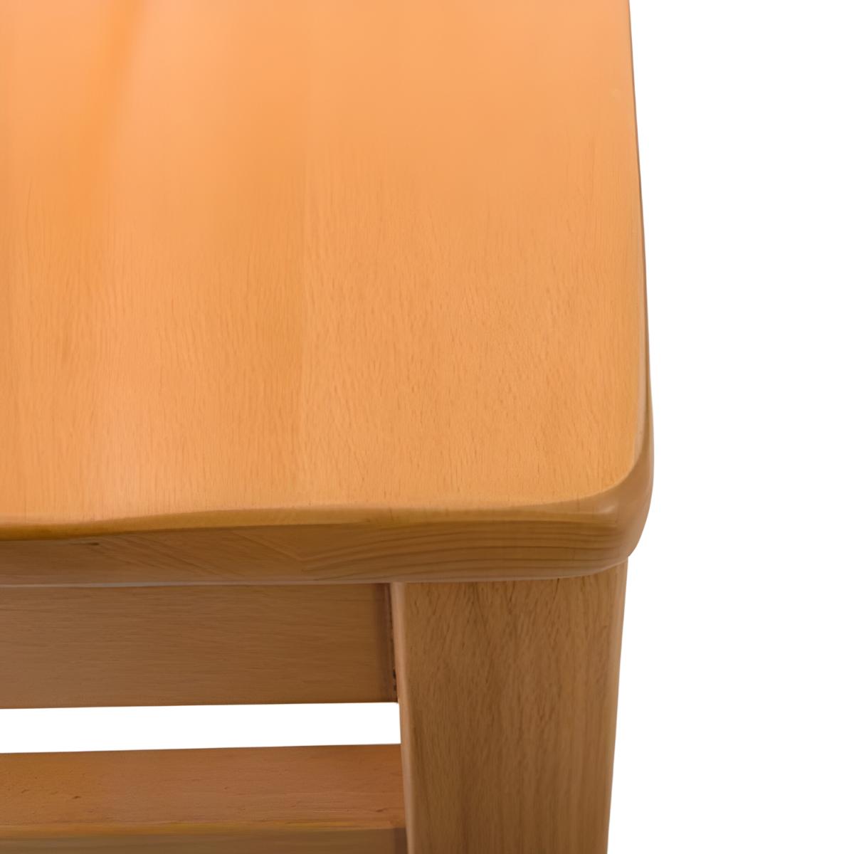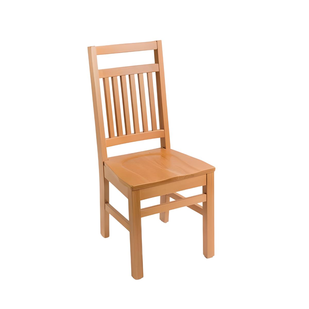 Este un scaun cu spătar înalt, rezistent având cadru din lemn masiv de fag. Șezutul este din lemn masiv fag, ușor de întreținut, format ergonomic. Scaunul are dimensiuni confortabile, este potrivit atât pentru un restaurant sau o pizzerie, cât și pentru acasă în living sau bucătărie.