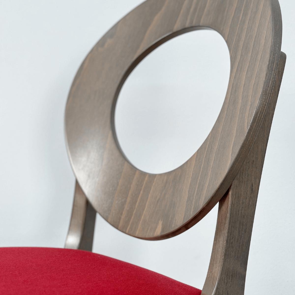 Scaunul VENETO este scaun cu un design modern, contemporan. Forma spătarului este rotundă realizată din elemente de lemn stratificat. Tapițeria șezutului poate fi material textil sau piele sintetică. Este recomandat pentru bucătărie, pentru living, sufragerie sau restaurant, cafenea sau bar. Datorită susținerii pe care oferă spatelui este un scaun foarte confortabil pentru șezut îndelungat.